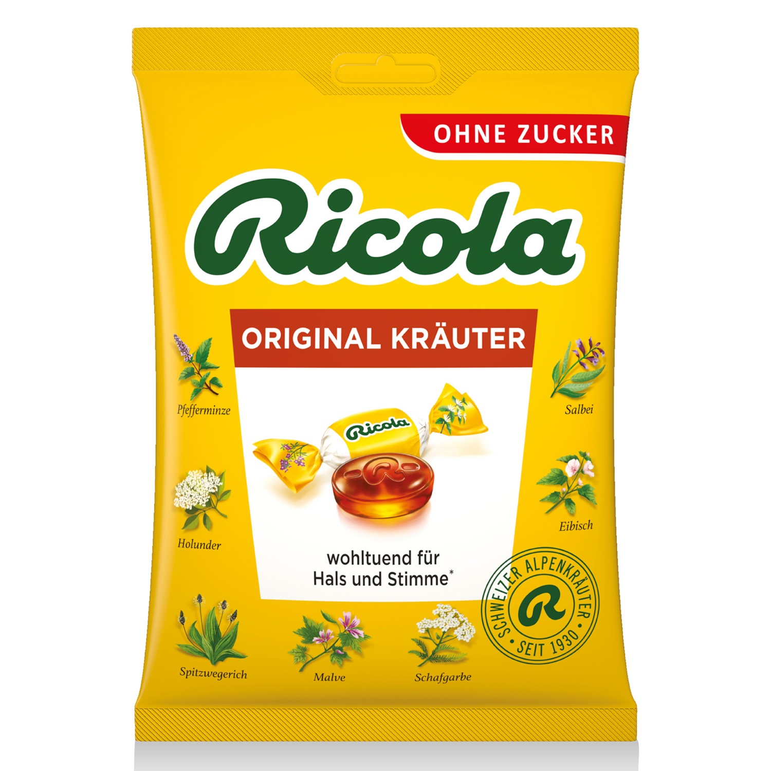 RICOLA Cukormentes cukorka, klasszikus, 75 g