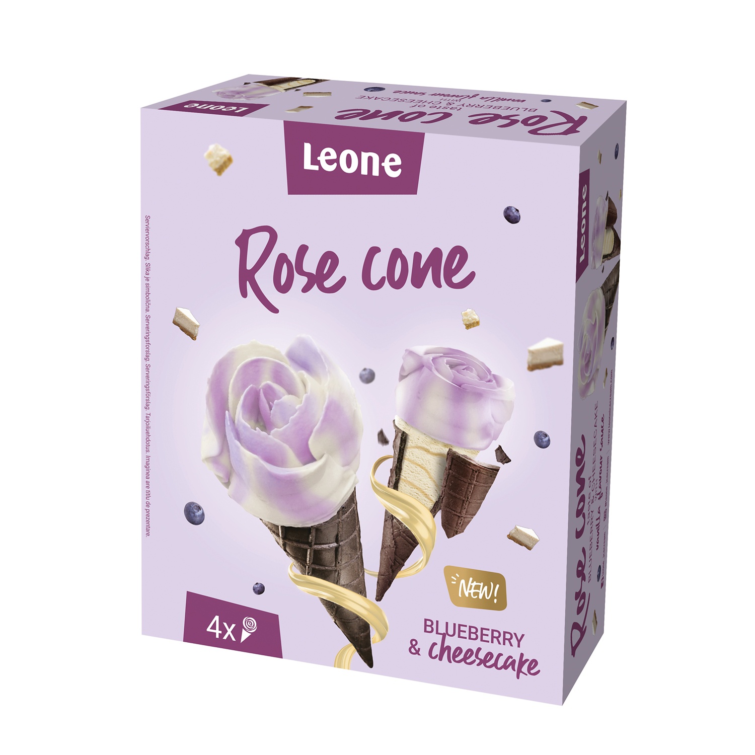 Rózsa alakú tölcséres jégkrém 4 x 130ml, áfonyás