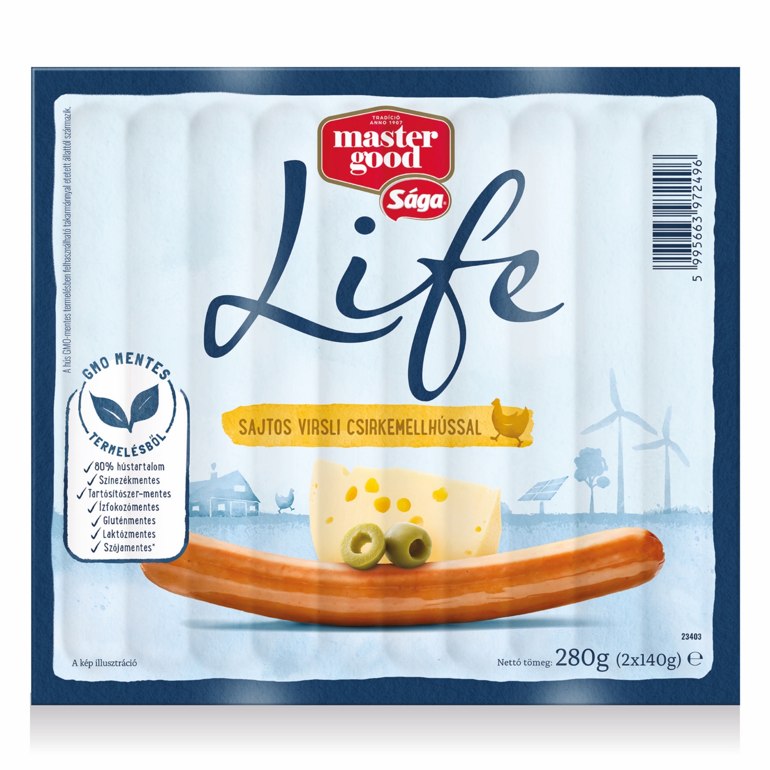 SÁGA Life virsli csirkemellhússal, gouda sajtos, 280 g