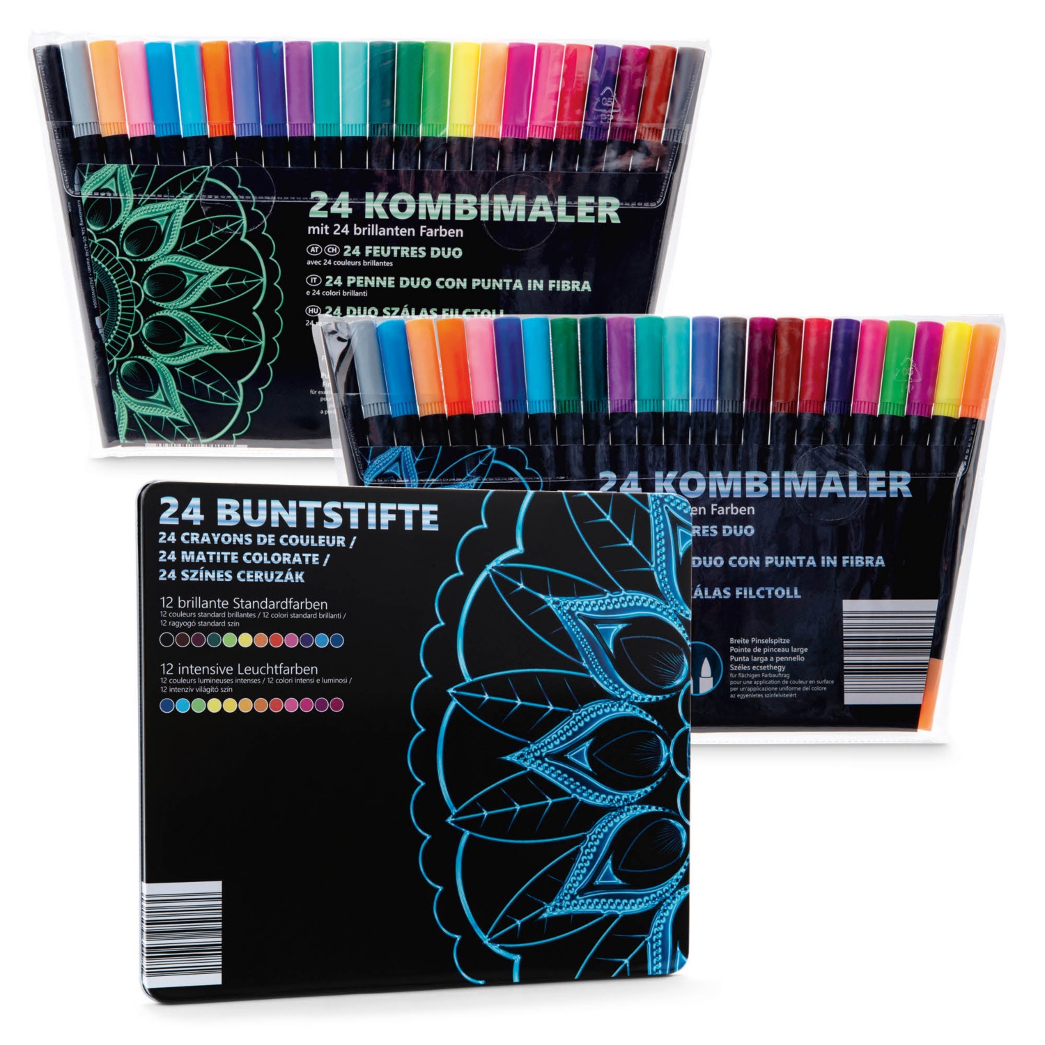 Színesceruza- vagy dupla hegyű filctollkészlet, 24 darabos