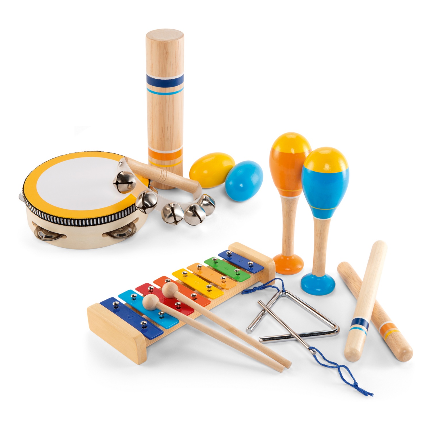 - 2-es készlet: csörgődob, tojás shaker, esőbot, csörgőkarika