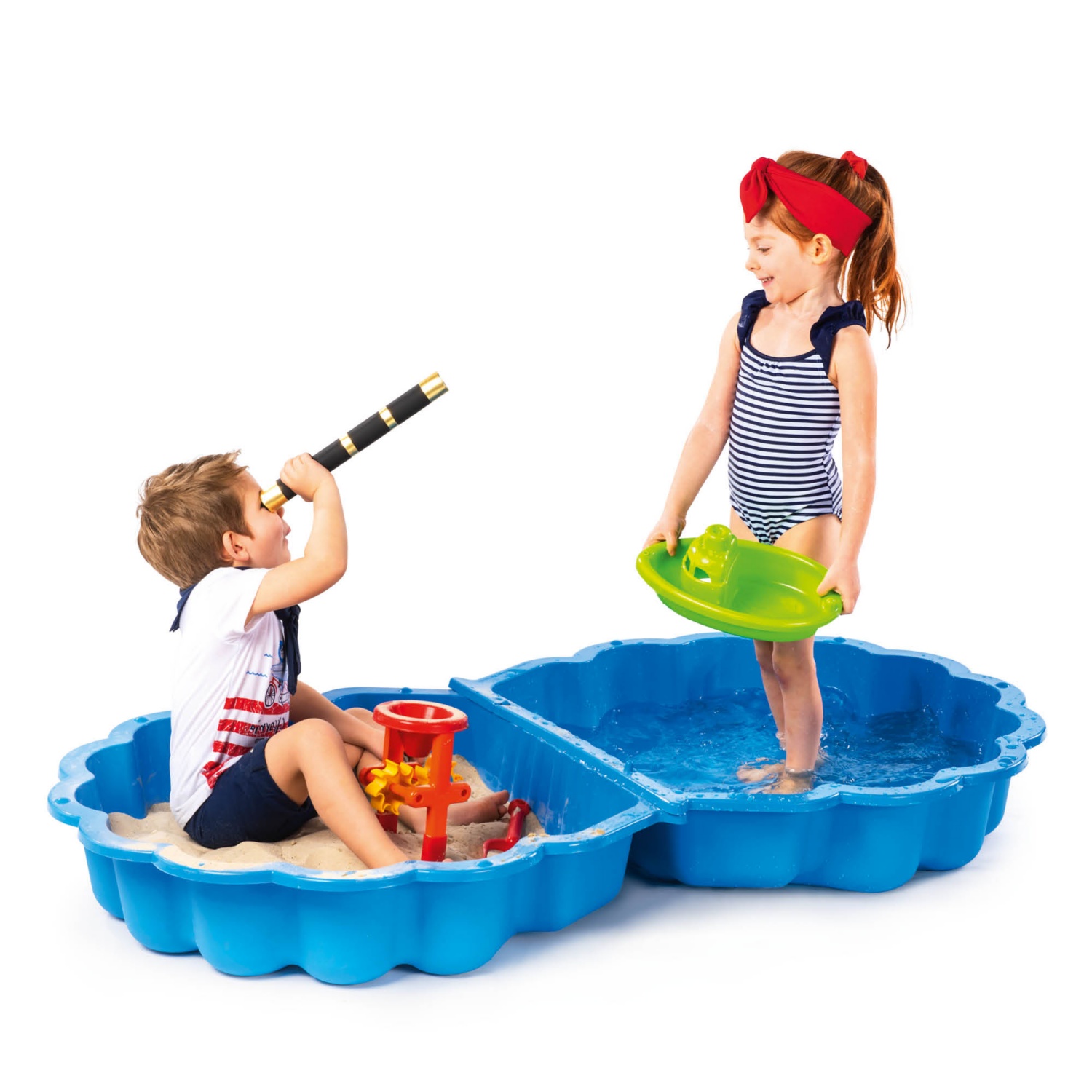 2 részes, homokozóként és pancsolóként egyaránt használható, műanyagból készült, méret: kb. 87 x 78 x 18 cm, 18 hónapos kortól ajánlott Cikkszám: 17660