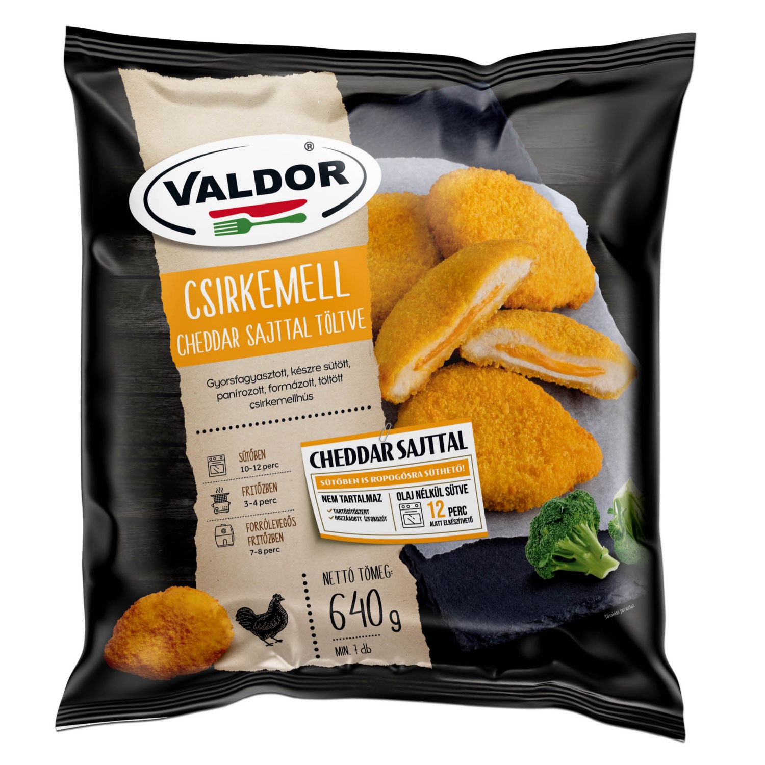 VALDOR Csirkemell cheddar sajttal töltve, 640 g