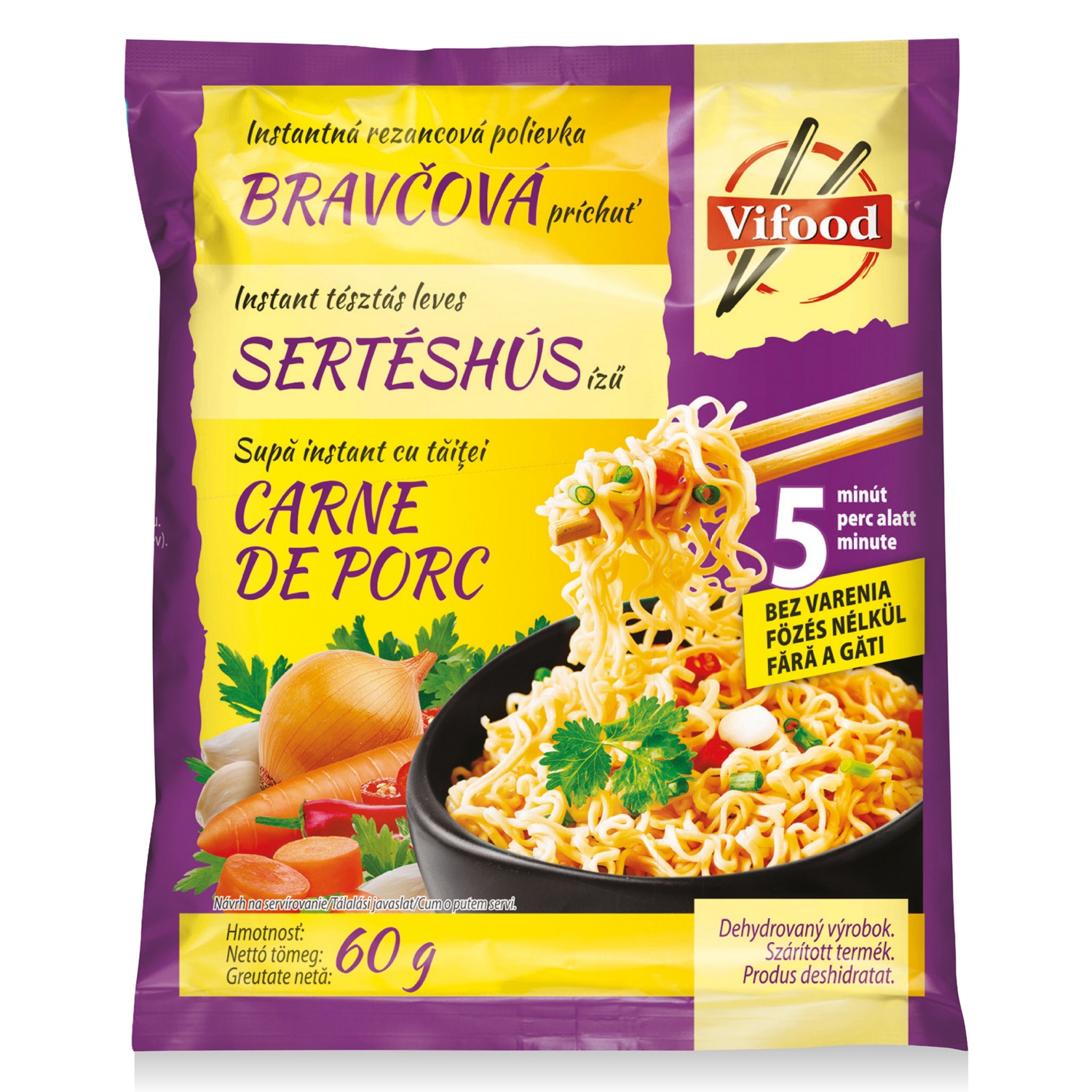 VIFOOD Instant tésztás leves, sertéshúsízű, 60 g