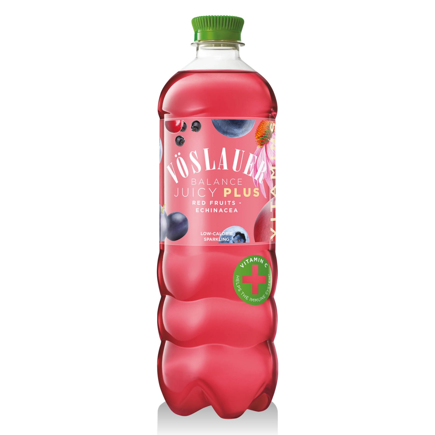 VÖSLAUER Szénsavas üdítőital, piros gyümölcsök-echinacea, 0,75 l