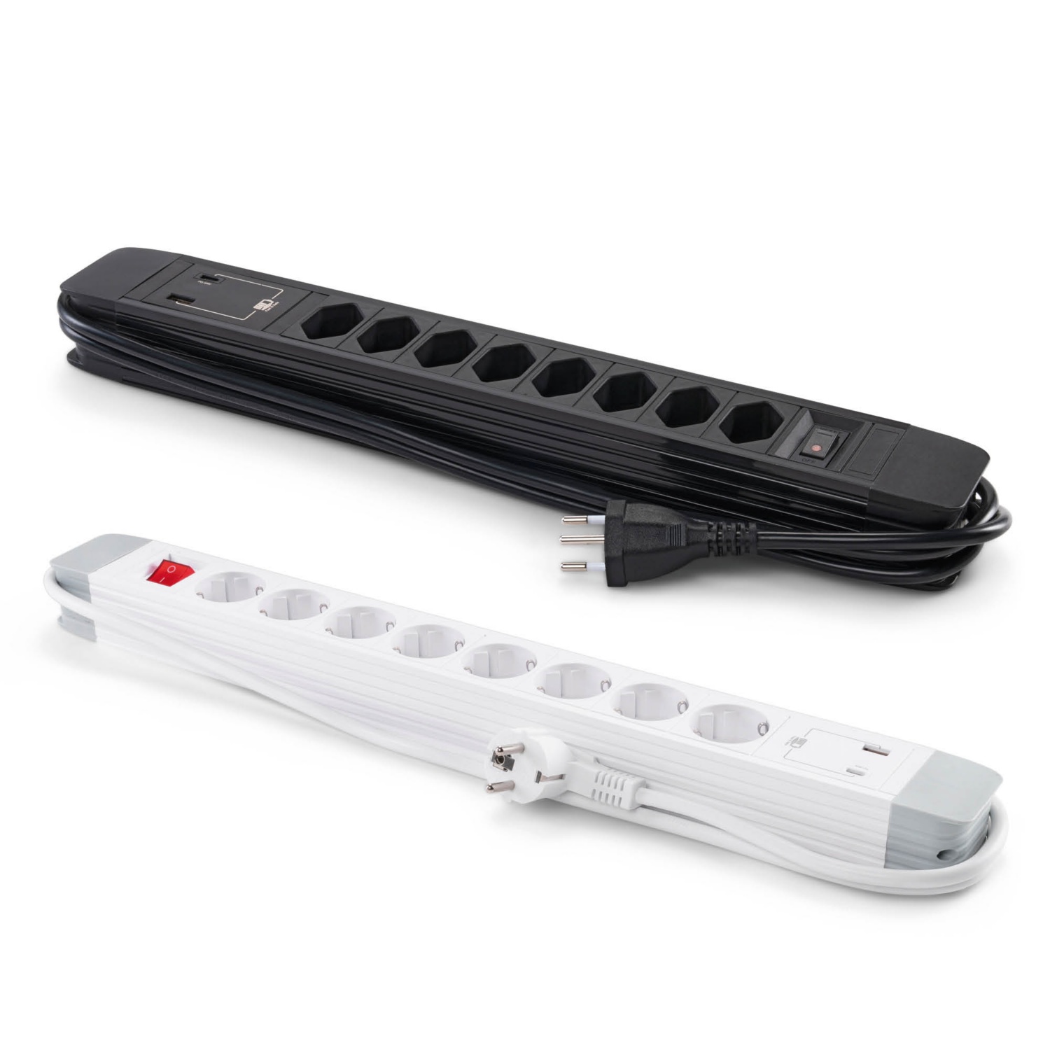 - 8 aljzat, 1 USB-A és 1 USB-C csatlakozó