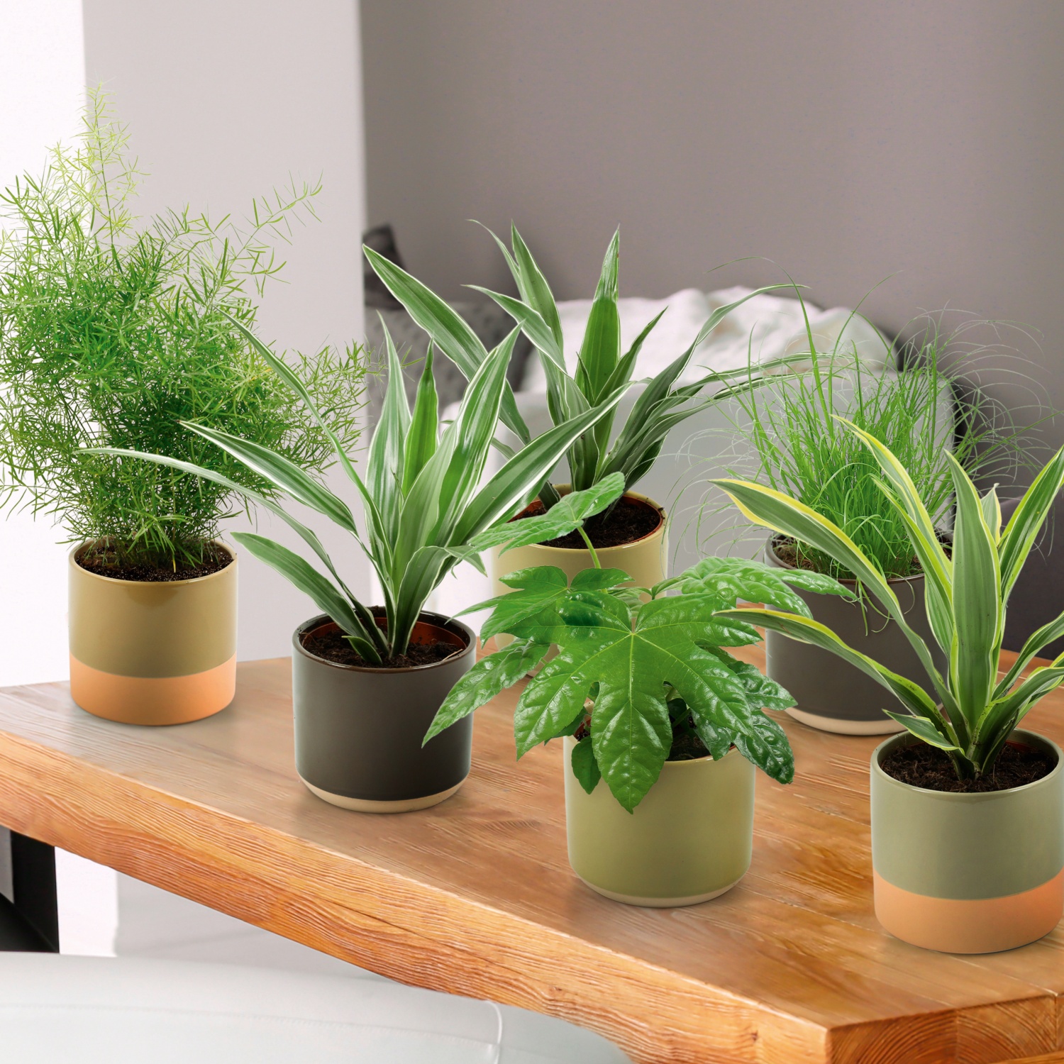 - különböző könnyen kezelhető szobanövények, pl. törpebors, kávécserje, zöldike stb.