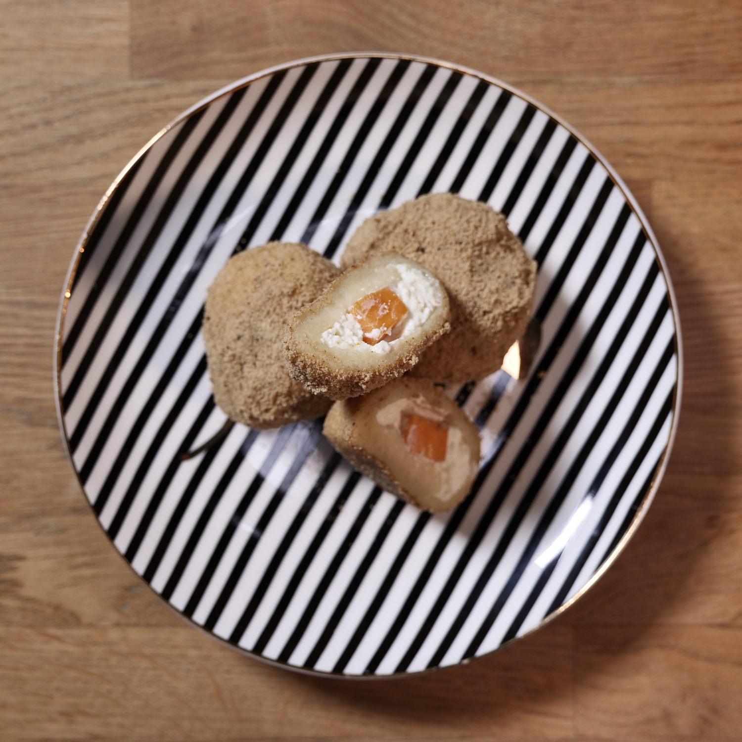 Barackos-túrókrémes gombóc zabkekszmorzsában